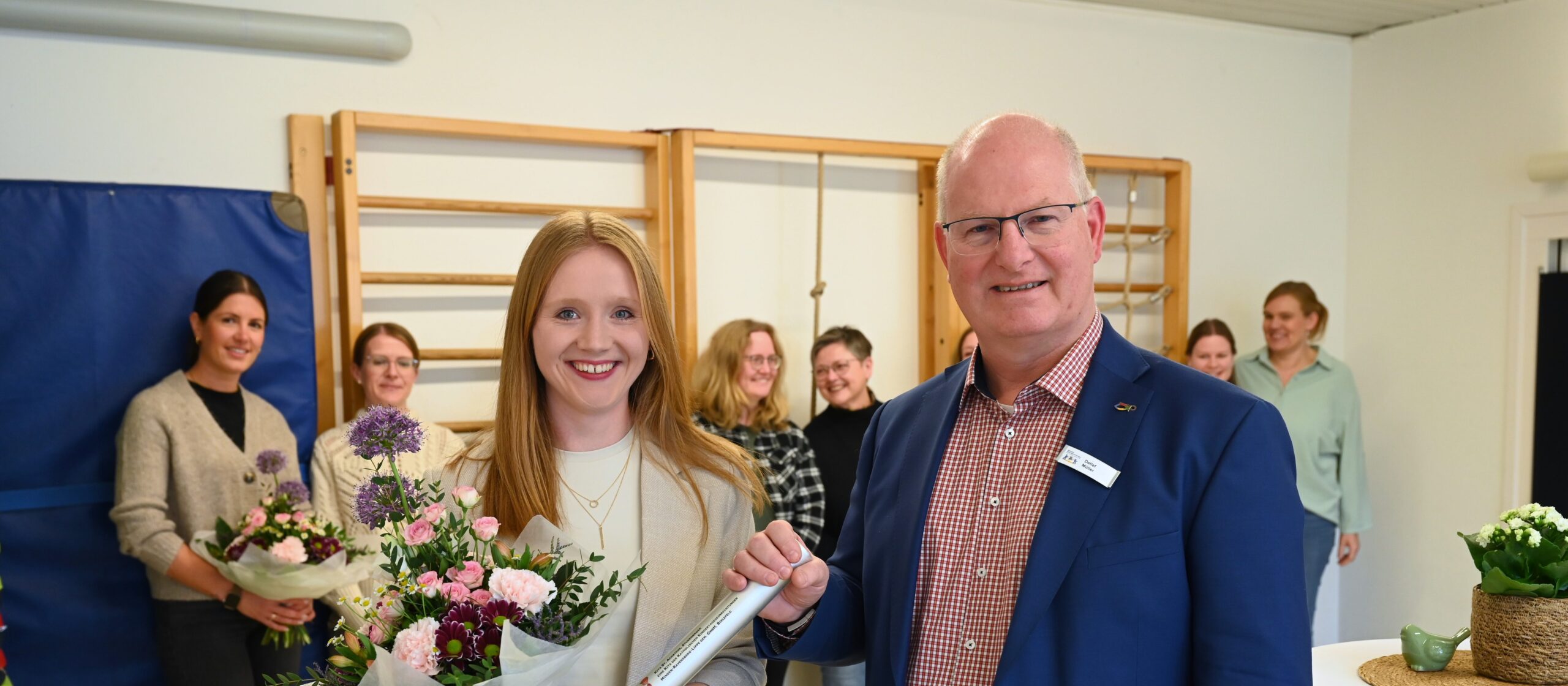Blumen hatte Müller auch für die stellvertretende Leitung Alina Kampsmann dabei, die für ein halbes Jahr die Leitung kommissarisch übernommen hatte. „Das ist nicht selbstverständlich, dass Sie so viel mehr Verantwortung auf sich genommen haben“, bedankt er sich.