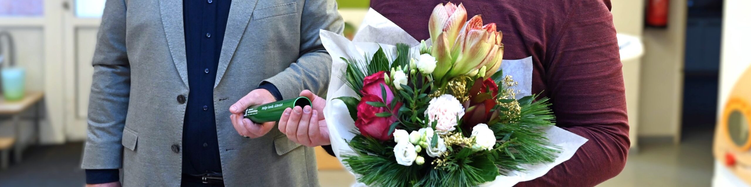 Sein Dank galt auch den Kollegen Robin Korczak und Barbara Behler, die die Drei-Gruppen-KiTa in der Zeit der Leitungsvakanz gemanagt haben. „Das ist nicht selbstverständlich“, betonte Müller und hatte auch für sie Blumen als Dank dabei.